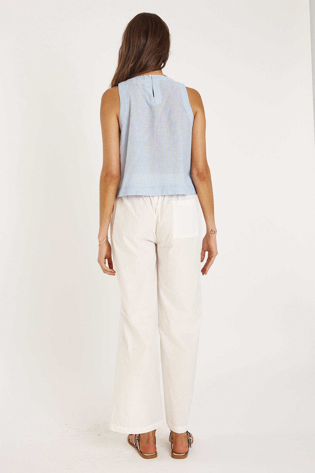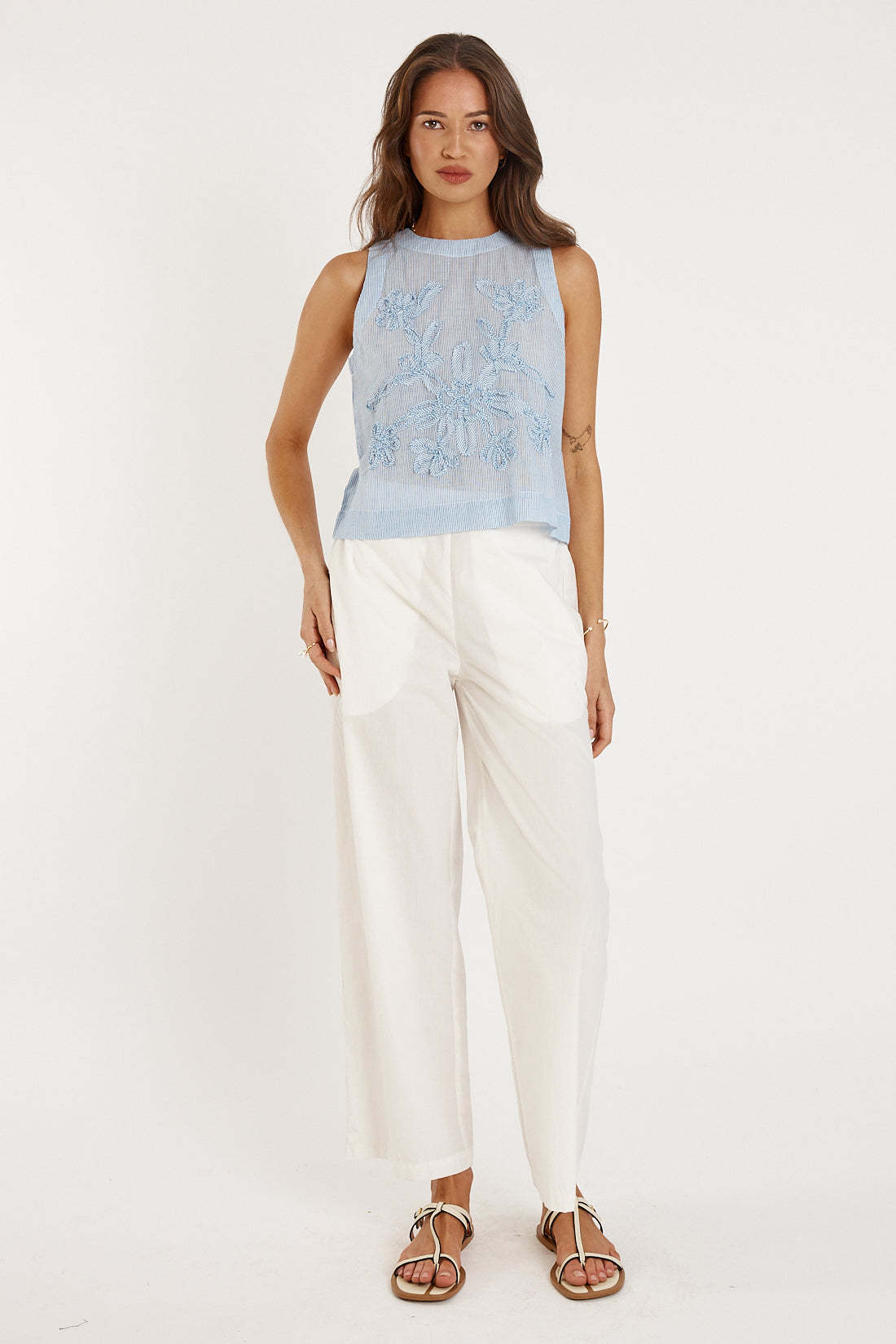 The Lucinda Pant in white combines effortless elegance with practical comfort. Crafted from luxurious 100% viscose, this full-length style features a refined button and zip front opening for versatile styling. The elasticated back waist ensures a flattering fit that moves with you throughout the day. A timeless wardrobe essential that transitions seamlessly from professional settings to weekend wear.