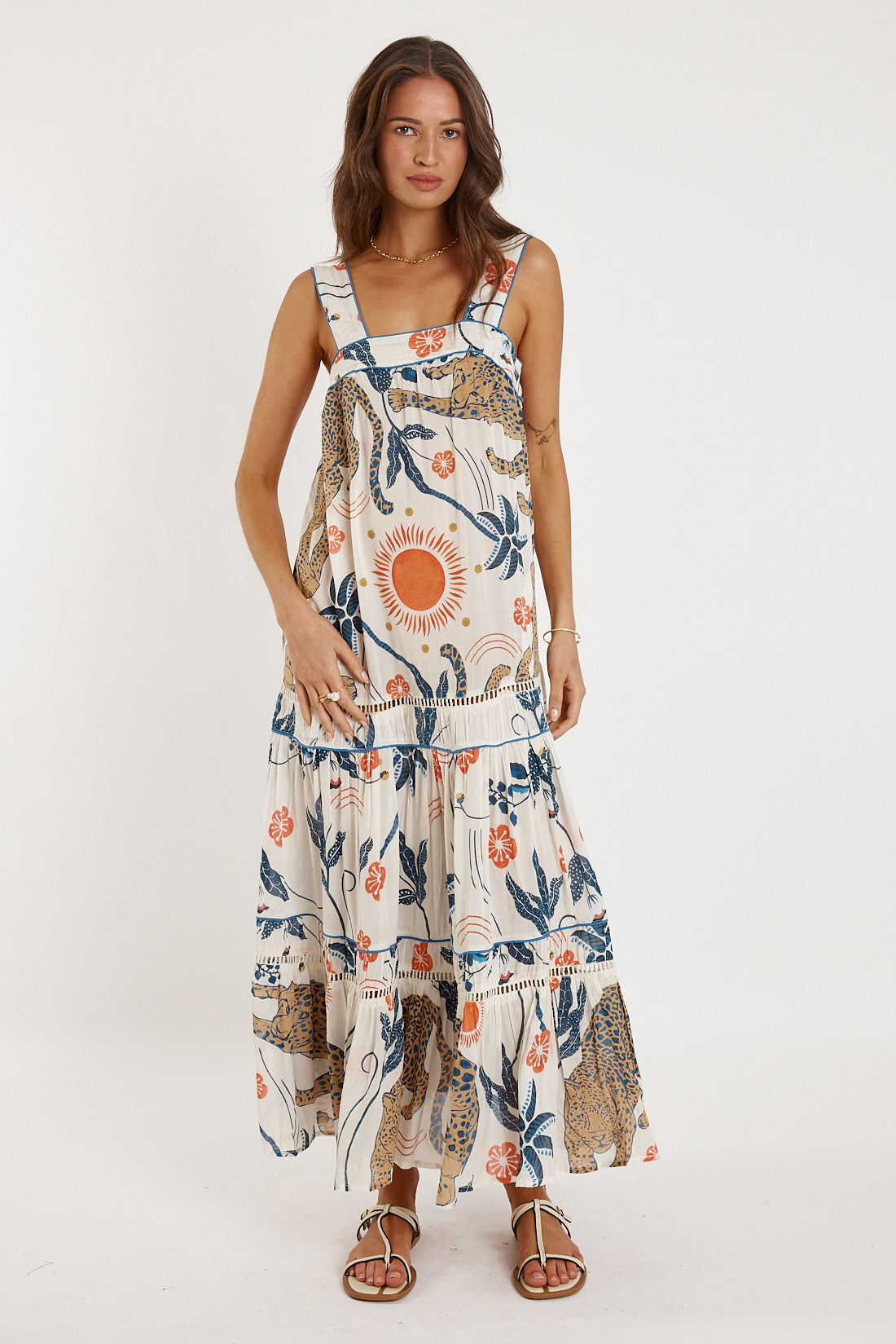 The Rubyyaya Celine Sundress Print combines effortless elegance with everyday comfort. Crafted from pure 100% cotton, this maxi sundress features a striking digital print that makes a refined statement. The relaxed fit drapes beautifully while allowing freedom of movement, while the distinctive back opening adds an unexpected touch of sophistication. Perfect for warm weather occasions, from casual outings to garden gatherings.