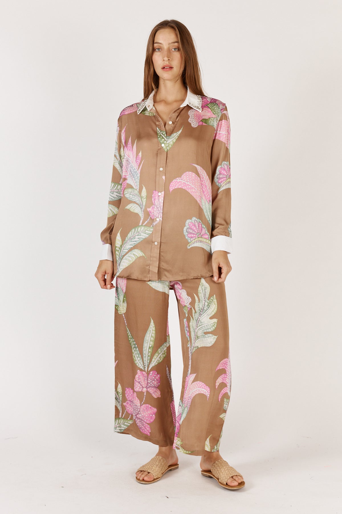 Elevate your wardrobe with the Ubud Shirt, crafted from luxurious 100% viscose satin for a smooth, elegant feel. Featuring a refined diamanté collar and a structured shoulder yoke, this shirt combines subtle sparkle with tailored sophistication. The full-length sleeves end in adjustable buttoned cuffs, allowing for a perfect fit. Designed in Australia and made in India, it offers both style and quality. Gentle machine wash care ensures lasting wear. Perfect for those seeking a polished, graceful look.